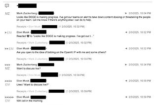 A recent flurry of filings reveal chummy messages between Musk and Mark Zuckerberg, as well as strategizing between Musk and his maybe-partner Shivon…
