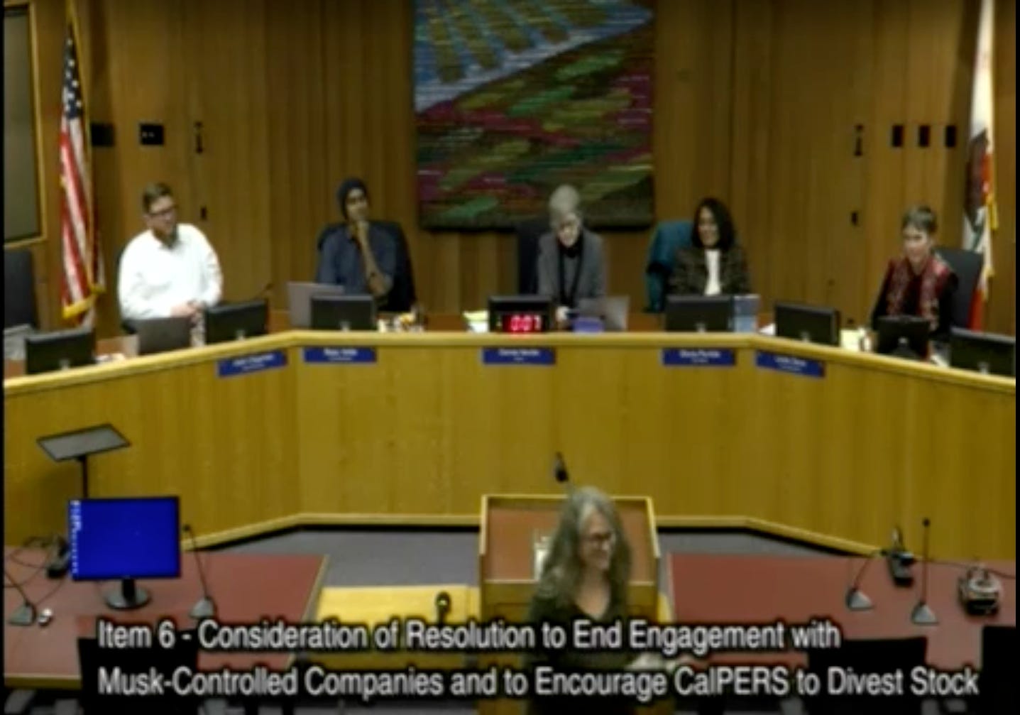 Posehn is a retired foundation director. She is not a professional organizer. But she’d like you to know that you’re wrong about something — that persistent feeling that the handful of companies propping up the stock market while taking a rightward political turn is too powerful, too embedded, too inevitable to fight. Because on February 18, 2026, the Davis City Council voted 4-1 to pass the resolution she and her team drafted, severing the city’s engagement with nearly every company Musk controls — Tesla, SpaceX, X, Neuralink, xAI, The Boring Company, and Tesla Robotaxis. No new contracts. No new purchases. No Musk platforms in official city communications. The resolution also formally calls on CalPERS — the largest public pension fund in the nation, holding roughly $2 billion in Tesla stock — to divest. The only carve-out: Starlink stays as an emergency backup when the power goes out — a reminder of how thoroughly Musk’s empire is woven into the infrastructure of daily life.