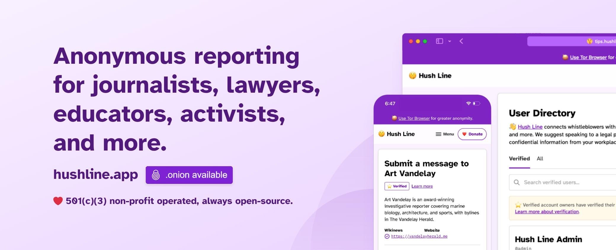 Ad: Hush Line is a platform that provides individuals and organizations with open-source, end-to-end encrypted, anonymous tip lines.